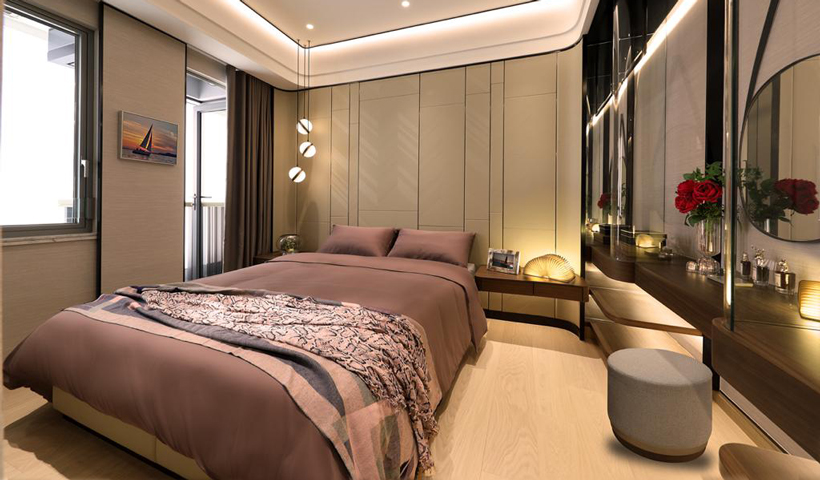 2. 家具布局图所示之设计、颜色、布局、用料、装置、装修物料、设备、植物、园景、设施、家具、摆设、灯饰、物件等(如有)并不一定为交楼标准,未必会在期数落成时于住宅物业提供。装置、装修物料、设备及家具(如有)之提供以买卖合约条款及条件为准。